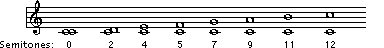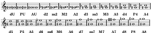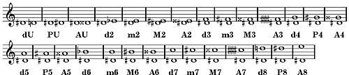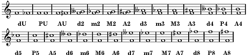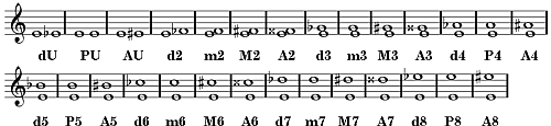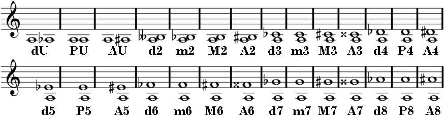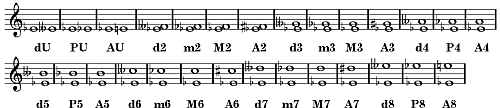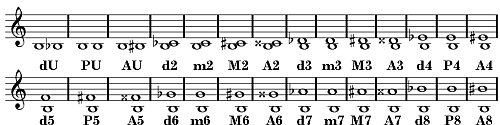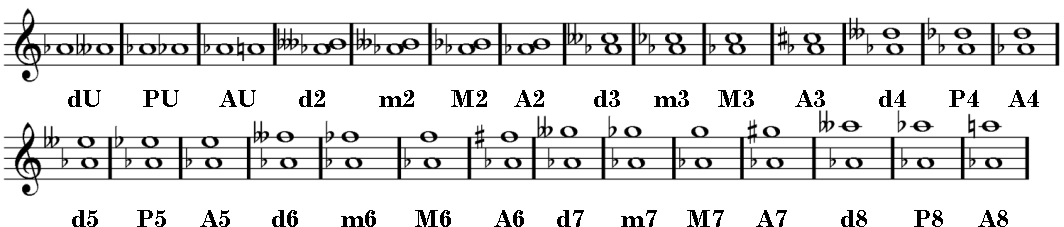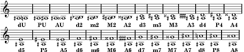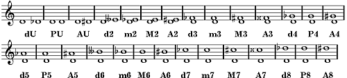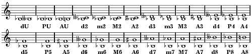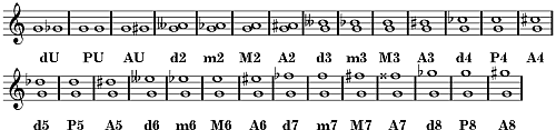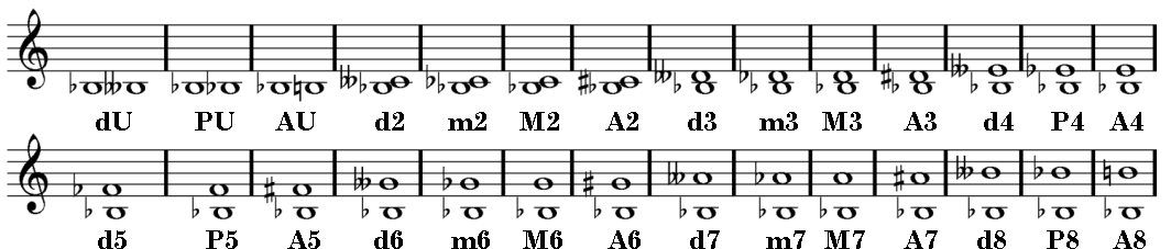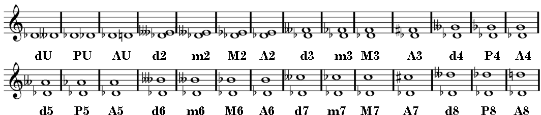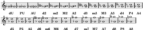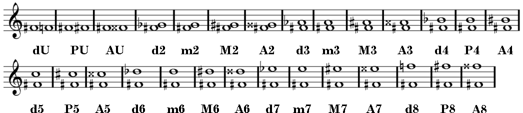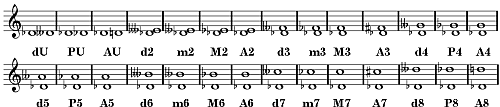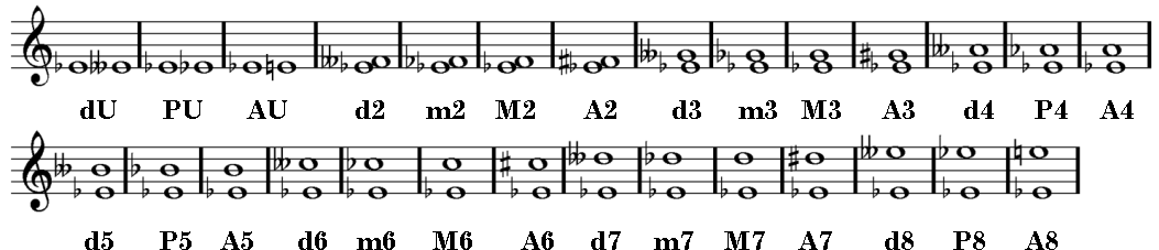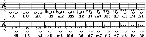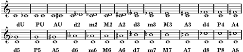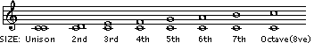 The following are examples of the intervals in the first octave that can be built above the name key note: