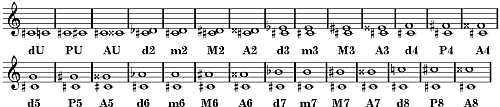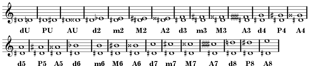 Still larger intervals are possible, but are usually reduced to either the 1st octave or the 2nd octave compound interval name.